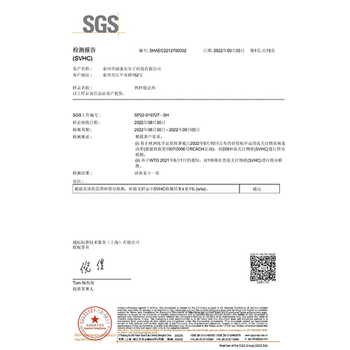 定制产品类型:塑料热稳定剂、氯化聚乙烯CPE135A产品等钙锌稳定剂SGS证书